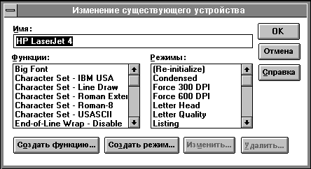 - "Изменить" - позволяет изменить выбранный режим или функцию путем добавления или удаления функций или управляющих последовательностей соответственно из их определений.