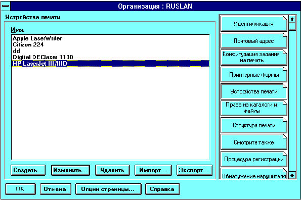 Функция "Импорт" позволяет импортировать в базу данных определение нового печатающего устройства, которое может быть использовано объектами в данном контейнере. Определение состоит из имени, функций и режимов.