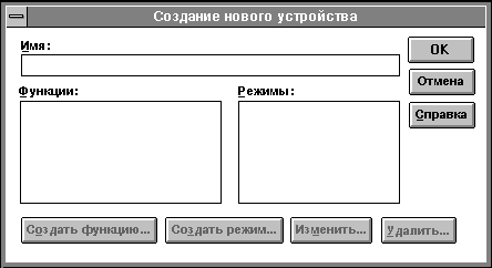 - "Создать режим" - позволяет определить новый режим и добавить его в список "Режимы".