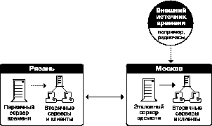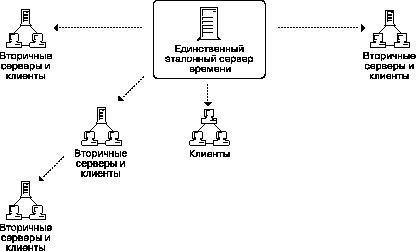 Временная метка становится особенно важной при репликации разделов Каталога и необходимости установки порядка их обновления. Репликация позволяет обновлять разделы Каталога, когда источники изменений Каталога различны. Когда различные пользователи одновременно изменяют реплики раздела Каталога, некоторые изменения могут относиться к одним и тем же данным. Например, пользователь может удалить объект, а затем заново создать его. Если бы не существовал способ определения порядка этих событий, могла бы возникнуть ситуация, когда созданный в Каталоге объект был бы снова удален. Временные метки позволяют Каталогу точно восстановить порядок возникновения событий. Серверы времениПри установке сервера NetWare 4 вы получаете предложение определить его в качестве Единственного эталонного, Первичного, Эталонного или Вторичного сервера времени. Каждое из этих значений определяет функцию сервера в системе синхронизации времени