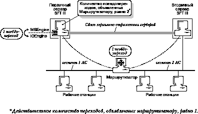 Система SFT III использует счетчик псевдопереходов для ускорения процесса переключения, происходящего в случае отказа первичного сервера, если серверы расположены в разных сегментах сети. NOTE: Если серверы SFT III установлены в одном сегменте сети, то переходы между ними отсутствуют и система SFT III не использует счетчик псевдопереходов. При отказе первичного сервера оставшийся работоспособным вторичный сервер объявляет действительное количество переходов, что позволяет маршрутизаторам сразу распознать его как кратчайший путь к MSEngine. Общее число переходов (действительное число переходов плюс счетчик псевдопереходов) между клиентом и сервером не должно превышать 16. Параметр SET позволяет установить значение счетчика псевдопереходов и определяет его максимальное значение. Назад | Содержание | Вперед |