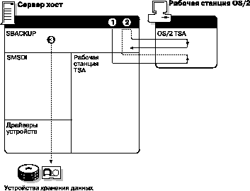 Резервное копирование рабочей станции OS/2Ниже на рисунке изображена упрощенная диаграмма резервного копирования рабочей станции OS/2: Figure 37-9. Резервное копирование рабочей станции OS/2