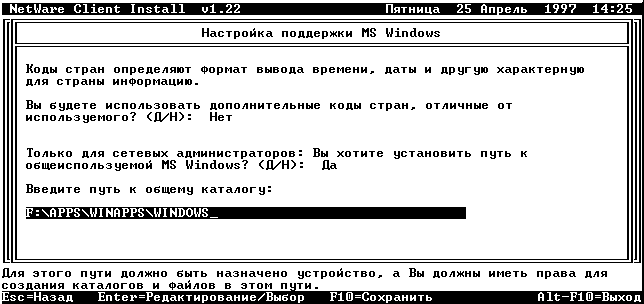 На рабочую станцию программа инсталляции копирует необходимые файлы для запуска Microsoft (MS) Windows. По умолчанию устанавливается путь в каталог C:\WINDOWS, если только файл WIN.COM не найден в перечисленных путях переменной среды DOS PATH. Если файл WIN.COM не найден в переменной PATH, то поддержка MS Windows не устанавливается.