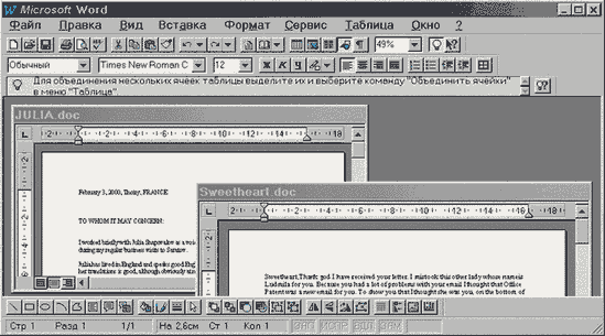 Рис. B.7. Вспомогательное окно Вспомогательные окна (popup) - это окна, в которые выводится информация о работе приложения, устанавливаются его параметры с помощью органов управления. Примером вспомогательного окна является диалоговое окно (dialog box). Как правило, диалоговое окно всегда модально , то есть оно всегда активно и управление (или фокус) никогда не передается основной программе, пока это окно не закроется. Вспомогательное окно всегда располагается поверх всех окон на экране. Оно может иметь, а может и не иметь родительского окна. В последнем случае считается, что родитель этого окна - рабочая область экрана. Как правило, у вспомогательного окна нет системного меню , увеличителя и уменьшителя , строк состояния и линий прокрутки. Зато у него есть дополнительные элементы графического интерфейса - органы управления, которыми можно менять настройки родительского приложения. Оно почти всегда имеет три кнопки: OK (Готово) , Cancel (Отмена) и Help (Помощь). Нажатие OK сохраняет все введенные изменения параметров работы приложения и закрывает окно. Кнопка Cancel закрывает приложение без изменения параметров настроек. Клавиша Help открывает окно справки с описанием работы данного окна и назначения элементов управления данного окна. B.2.2.5.4. Что такое дочерние окна?Дочерние окна (child) - окна с информацией рабочей программы, например, поле редактирования, лист электронной таблицы, документ Word и другие документы многооконных приложений. Дочерние окна обязательно имеют родительское окно. Они никогда не отображаются вне своего родительского окна. Родительским окном дочернего окна является перекрывающееся окно приложения.