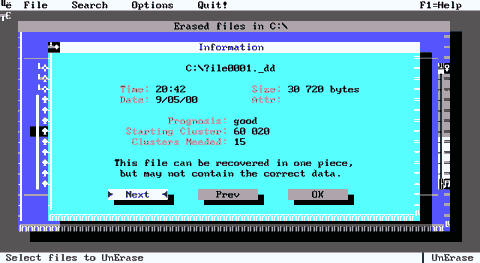 Рис. E.7. Окно Info программы UNERASE