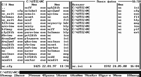 Рис. F.11. Вывод результатов поиска в панели Norton Commander 5.0. - слева - полный путь к файлу; - справа - имя файла и расширение. Эта панель запоминается оболочкой до следующего вывода результатов поиска. Вызывается она выбором режима “Панель поиска” в меню левой или правой панели. Назад | Содержание | Вперед