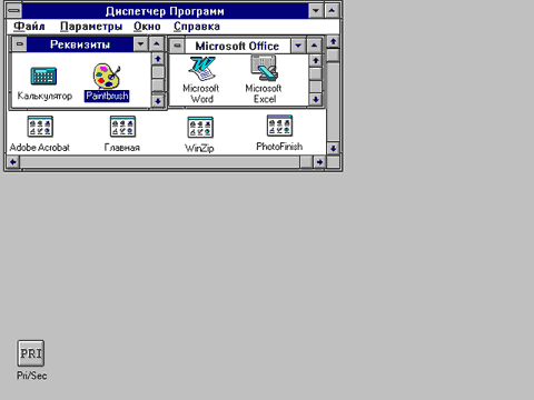H. Общий взгляд на работу операционных систем с графическим интерфейсом пользователя.СодержаниеH.1. Операционная оболочка WINDOWS 3.11.H.1. Операционная оболочка WINDOWS 3.11.H.1.1. Рабочая область WINDOWS 3.11.Рабочей областью в Windows 3.11 обычно является чистый экран серого цвета, на котором отображаются окна или иконы запущенных приложений. Причем одно приложение находится обязательно в рабочей области: оно находится или в виде окна, или в виде иконы -это Менеджер программ Windows (Program Manager).