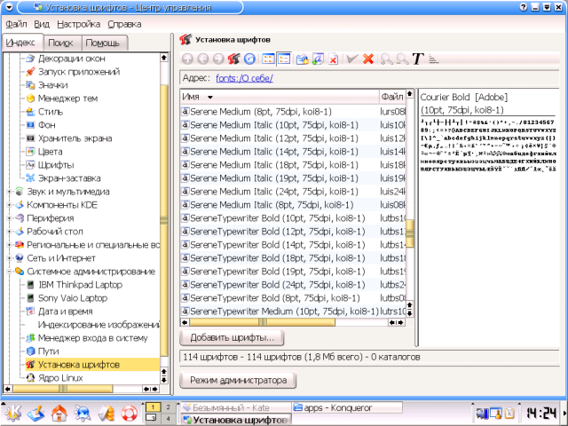Здесь, однако, хотелось бы мне заострить внимание на пункте Установка шрифтов. Конечно, обычно это проделывается для Иксов в целом - записью шрифтовых файлов в подкаталоги каталога