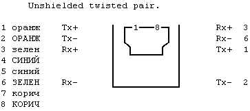 Неэкранированная витая пара, разъем RJ45