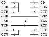 Идея 1: все "симметричные" сигналы перекидываем крест-накрест. TXD-RXD, DTR-(DSR,CD), CTS-RTS, GND-GND Идея 2: Готов/Готов замыкаем на самом порту, и экономим провод. Если достаточно обнаглеть, то нам хватит 3 проводов. Если длина шнура приличная (больше нескольких метров), настоятельно рекомендуется использовать 4 провода - 2 витые пары, по одному земляному проводу в каждой. Кроме того, экономия проводов приведет к тому, что не будет работать Hardware Flow Control (DTR/DSR), придется пользовать Software (XON/XOFF). Фактически: 2 провода TxD на RxD, и третий - сигнальная земля. Локально, на самом порту замыкаем RTS-CTS, DSR-DTR и все это на DCD/DTR. ![]() Альтернативная картинка урезанного нуль-модема ![]() Виды коннекторов