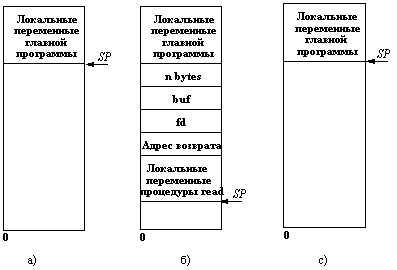 Рис. 3.1. а) Стек до выполнения вызова read;