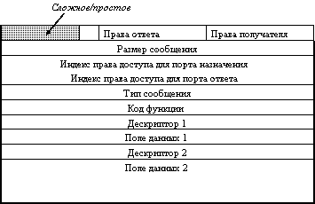 Первый вызов, Allocate, создает новый порт и вводит его право в список прав процесса, выполнившего этот вызов. Это право является правом ПОЛУЧИТЬ из этого порта. Имя права возвращается, так что порт можно использовать. Следующие два вызова отменяют действие первого. Destroy удаляет право. Если это право ПОЛУЧИТЬ, то порт разрушается и все остальные права для него во всех процессах помечаются как недействительные. Deallocate уменьшает счетчик ссылок, связанный с правом. Если он равен нулю, то право удаляется, но порт остается существовать. Вызов Deallocate может использоваться только для удаления прав ПОСЛАТЬ и ПОСЛАТЬ_ОДИН_РАЗ или недействительных прав. Вызов Extract_right позволяет нити выбрать право из списка прав другого процесса и вставить это право в свой собственный список. Конечно, вызывающая нить должна иметь доступ к порту процесса, управляющего другим процессом (например, своим потомком). Insert_right работает иначе. Он позволяет процессу взять одно из своих прав и добавить его в список прав другого процесса (например, своего потомка). Вызов Move_member используется для управления набором портов. Он может добавить порт к набору портов или удалить порт. Наконец, вызов Set_qlimit определяет максимальное количество сообщений, которые порт может хранить. Когда порт создается, то их по умолчанию 5, но с помощью вызова Set_qlimit это количество может быть увеличено или уменьшено. Сообщения могут иметь любую длину, так как они сами не хранятся портом. Отправка и получение сообщенийКонечной целью создания портов является возможность отправки в них сообщений. В этом разделе поясняется, как сообщения отправляются, как получаются и что они содержат. Mach поддерживает один системный вызов для отправки и получения сообщений. Этот вызов содержится внутри библиотечной процедуры, называемой mach_mes. Она имеет семь параметров и большое количество опций. Чтобы дать представление о ее сложности, нужно отметить, что существует 35 различных кодов возврата ошибочных ситуаций. Ниже дается упрощенный обзор некоторых возможностей этой процедуры. К счастью, она используется в функциях, генерируемых чаще компилятором заглушек (stub compiler), а не вручную. Итак, вызов mach_mes используется и для отправки и для получения сообщений. Он может отослать сообщение в порт, а затем вернуть управление вызвавшей mach_mes функции немедленно, так что она может модифицировать буфер сообщения, не влияя на посланные данные. Он может также использоваться для попытки получения сообщения из порта, причем, если порт пуст, он либо блокирует вызвавшую нить, либо отказывается от попытки по истечении некоторого тайм-аута. Наконец, можно объединять операции отправки и получения, сначала отсылая сообщение, а затем блокируя нить до получения ответа. В последнем режиме вызов mach_mes можно использовать для реализации RPC. Типичный вызов функции mach_mes выглядит так: mach_mes( &hdr, options, send_size, rcv_size, rcv_port, timeout, notify_port); Первый параметр, hdr, является указателем на сообщение, которое нужно отослать или на место, куда нужно поместить приходящее сообщение, или на то и другое. Сообщение начинается с фиксированного заголовка, непосредственно за которым следует тело сообщения. Эта структура показана на рисунке 6.11. Детали формата сообщения будут рассмотрены ниже, а сейчас необходимо отметить, что заголовок содержит имя права доступа для порта назначени