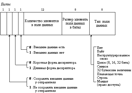![]() Рис. 6.11. Формат сообщения Mach Остальные биты поля options позволяет операции ПОСЛАТЬ, которая не может завершиться немедленно, вернуть управление, а сообщение о статусе завершения посылается на notify_port позже. Параметры send_size и rcv_size определяют длину отсылаемого сообщения и количество байт, отводимых для хранения приходящего сообщения, соответственно. Rcv_port используется для приема сообщений. Это имя прав доступа порта или набора портов, которые должны получить сообщение. Теперь рассмотрим формат тела сообщения. Первое слово содержит бит, говорящий о том, является сообщение простым или сложным. Разница состоит в том, что простое сообщение не может содержать прав доступа или защищенных указателей, а сложное может. Простое сообщение требует меньших усилий со стороны ядра и, следовательно, более эффективно. Оба типа сообщения имеют определенную системой структуру, описанную ниже. Поле Размер сообщения указывает общую длину заголовка и тела сообщения. Эта информация нужна как передающей, так и принимающей сторонам. Далее идут имена двух мандатов доступа (то есть индексы в списке прав доступа передающей стороны). Первый относится к порту назначения, а второй - к порту ответа. Последние два поля заголовка ядром не используются. Их могут использовать более высокие по иерархии слои программного обеспечения. По соглашению они используются для указания типа сообщения и кода функции или операции (например, для сервера нужно пояснить, это запрос на чтение или на запись). Это назначение может измениться в будущем. Когда сообщение успешно отослано и получено, оно копируется в адресное пространство адресата. Однако может случиться, что порт назначения уже полностью заполнен. Одной из возможностей тогда будет блокирование отправителя и просто ожидание, пока порт не сможет принять сообщение. Другой вариант связан с организацией тайм-аута. В некоторых случаях можно превысить предел максимального числа сообщений для порта. Следует упомянуть о некоторых вопросах, связанных с приемом сообщений. Во-первых, что делать, если поступившее сообщение имеет длину больше, чем длина буфера? Предусмотрено два варианта: удалить это сообщение или же вернуть вместе с кодом ошибки данный размер, чтобы позволить вызвавшей функцию mach_mes нити повторить передачу с буфером большего размера. Если существует несколько нитей, блокированных на операции ПОЛУЧИТЬ из одного и того же порта, и сообщение поступает в порт, то системой выбирается одна из них для получения сообщения. Остальные остаются блокированными. Форматы сообщений Как уже было сказано, тело сообщения может быть простым или сложным, в зависимости от значения управляющего бита заголовка. Структура сложного сообщения показана на рисунке 6.11. Тело сложного сообщения состоит из последовательности пар (дескриптор, поле данных). Каждый дескриптор несет информацию о том, что находится в поле данных, следующим непосредственно за дескриптором. Дескриптор может иметь два формата, различающихся только количеством бит в каждом его поле. Обычный формат дескриптора приведен на рисунке 6.12. Дескриптор определяет тип последующих данных, их длину, и количество однотипных данных (поле может содержать некоторое число данных одного типа). Возможны такие типы данны, как последовательность бит и байт, целое число различ