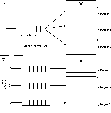 Рис. 2.9. Распределение памяти фиксированными разделами: