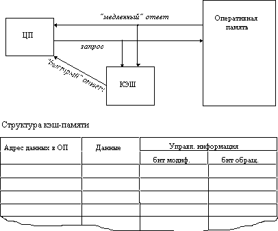 Все предыдущие рассуждения справедливы и для других пар запоминающих устройств, например, для оперативной памяти и внешней памяти. В этом случае уменьшается среднее время доступа к данным, расположенным на диске, и роль кэш-памяти выполняет буфер в оперативной памяти.