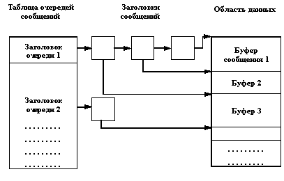 Как обычно, при выполнении системного вызова msgget ядро ОС UNIX либо создает новую очередь сообщений, помещая ее заголовок в таблицу очередей сообщений и возвращая пользователю дескриптор вновь созданной очереди, либо находит элемент таблицы очередей сообщений, содержащий указанный ключ, и возвращает соответствующий дескриптор очереди. На рисунке 3.6 показаны структуры данных, используемые для организации очередей сообщений.