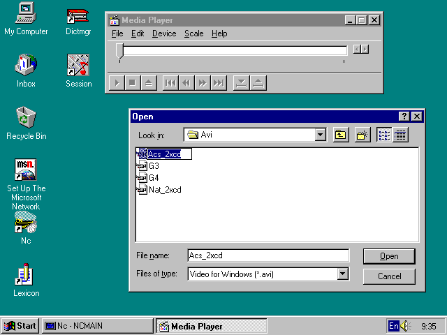 | Video for Windows | - проигрыватель видеофильмов, |