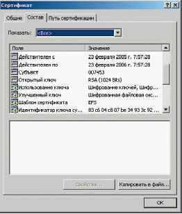 Защита почты в среде Windows основана на практической реализации протокола стандартизованного безопасного формата сообщения S/MIME. Secure Multipurpose Internet Mail Extensions — многоцелевое расширение для обеспечения безопасности интернет-почты. S/MIME защищает сообщения и файлы от несанкционированного раскрытия данных, поддерживает цифровые подписи и шифрование в соответствии со стандартом PKCS # 7. Шифрование базируется на инфраструктуре открытого ключа Windows 2000/2003 (PKI — public-key infrastructure), то есть используются сертификаты с личным ключом и технология криптографирования открытыми ключами. Службы сертификатов (Certificate Services) Windows 2000 выполняют целый ряд функций — но в данном случае нас интересует обеспечение защиты электронной почты с помощью цифровой подписи и шифрования. Не углубляясь в вопросы теории, уточним только, что службы сертификации Windows 2000 не устанавливаются по умолчанию при инсталляции операционной системы, а поставляются лишь в дистрибуции типа Server и состоят, в основном, из следующих компонент: