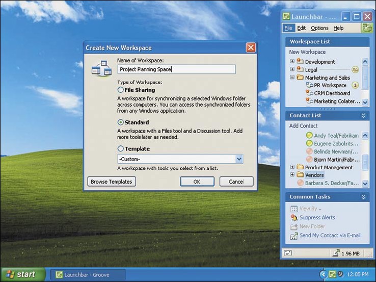 Создание новой рабочей области Groove