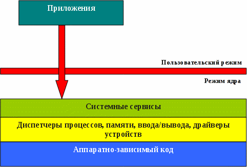 Как в UNIX, и в большинстве коммерческих ОС, у NT есть два режима исполнения кода. В пользовательском режиме выполняются приложения, подситемы OS/2, DOS, и POSIX. Эти компоненты являются непривилегированными, потому что NT управляет ими, а также аппаратными средствами, на которых они работают. Без разрешения NT эти компоненты не могут непосредственно получить доступ к аппаратным средствам. Кроме того, компоненты и оборудование не могут получить доступ ни к другим адресным пространствам, ни к адресному пространству ядра. Компоненты в пользовательском режиме должны обратиться к ядру, если они хотят получить доступ к аппаратным средствам или выделить физические или логические ресурсы. Ядро исполняется в привилегированном режиме: оно может непосредственно получить доступ к памяти и апаратуре. Ядро состоит из нескольких исполнительных подсистем, которые отвечают за обслуживание ресурсов, включая диспетчер процессов, диспетчер воода/вывода, диспетчер виртуальной памяти, справочный монитор безопасности, и микроядро, которое обслуживает планирование и прерывания. Система динамически загружает драйверы устройств, которые являются компонентами ядра и служат интерфейсом между NT и различными периферийными устройствами. Уровень абстрагирования от оборудования (HAL) скрывает специфичные особенности процессора и материнской платы от NT. Родной (native) API NT – это API, который приложения пользовательского режима используют для вызова ядра. Этот родной API главным образом недокументирован, потому что приложения, как предполагается, вызывают подсистему Win32, DOS, OS/2, POSIX, или Win16, и соответствующая подсистема взаимодействует с ядром от имени приложения. Разработчики Digital написали ядро VMS почти полностью на ассемблере VAX. Чтобы код был портируемым на различные архитектуры процессоров, разработчики Microsoft написали ядро NT почти полностью на C. При разработке NT, разработчики переписали VMS на C, избавили ее от недостатков, настроили, и добавили некоторый новый функционал и совместимость. Они создали новый API (то есть, Win32), новую файловую систему (то есть, NTFS), и новую графическую подсистему интерфейса, исполнительную среду, поддерживая т. о. обратную совместимость с DOS, OS/2, POSIX, и Win16. Однако, перемещение внутренностей VMS в NT было настолько полным, что в течение нескольких недель после выпуска NT, инженеры Digital заметили поразительные общие черты.