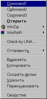Недоработки……а где их нет? То есть, конечно, этот компонент работает, я его использую, но в нем (пока) отсутствуют некоторые полезные функции. К примеру, если вы заглянете в файл ShlObj.pas, то обнаружите, что там, помимо использованного нами интерфейса IcontextMenu, объявлены также интерфейсы IContextMenu2 и IContextMenu3, которые используются для расширения базовых функций интерфейса (к примеру, IContextMenu2 используется для работы с элементами подменю). Кроме того, небольшая доработка компонента даст возможность включать в него свои собственные пункты меню (сравните рис. 3 и рис. 4). Так что не стоит рассматривать эту статью как исчерпывающее руководство по Shell Extensions - она призвана всего лишь пробудить в вас аппетит к дальнейшим исследованиям. |