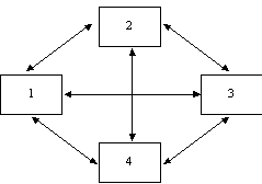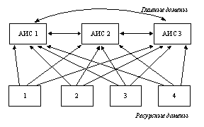 Рис. 6.4. Модель с полными доверительными отношениями Из-за резкого увеличения числа доверительных отношений эта модель не подходит для больших предприятий. Для n доменов нужно установить n(n-1) доверительных отношений. Перед созданием доверительных отношений с другим доменом администратор действительно должен быть уверен, что он доверяет администратору этого домена. Администратор доверяющего домена должен отдавать себе отчет в том, что после того, как он предоставляет права глобальным группам учетного (доверяющего) домена, администратор последнего может добавить в глобальную группу нежелательных или непроверенных пользователей. При администрировании главных доменов такая опасность также имеется. Но риск здесь ниже из-за того, что пользователей в главные домены добавляют сотрудники центрального отдела АИС, а не произвольно назначенный администратором сотрудник производственного отдела предприятия. Преимущества и недостатки модели с полными доверительными отношениями