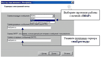 1.3.3. Укажите почтовые сервера и протокол для работы с почтой.