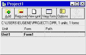 Дает возможность разработчику просмотреть все модули в соответствующем проекте и снабжает удобным механизмом для управления проектами. Менеджер проектов показывает имена файлов, время/дату выбранных форм и пр. Можно немедленно попась в текст или форму, просто щелкнув мышкой на соответствующее имя. Навигатор объектов