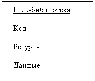 Рис.3 : Копии приложения и модуль приложения DLL - библиотека также является модулем. Она находится в памяти в единственном экземпляре и содержит сегмент кода и ресурсы, а также сегмент данных (см. рис. 4).