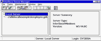 Рис. C: Окно ISQL с текстом и результатом выполнения SQL запроса. InterBase Server ManagerУтилита предназначена для администрирования InterBase. С ее помощью можно выполнить следующие операции: