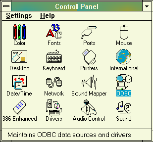 Рис. 4: Окно Панели управления с иконкой ODBC Установка BDE-алиаса, основанного на ODBC-драйвере состоит из трех шагов. На первом шаге нужно создать ODBC-алиас, "опирающийся" на ODBC-драйвер, на втором шаге - создать над ним надстройку в виде BDE-драйвера, а на третьем шаге - определить стандартный BDE-алиас.