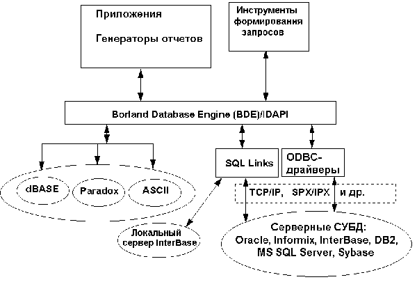 Рис.1. Связь приложений с источниками данных с помощью BDE BDE обеспечивает для созданных приложений: