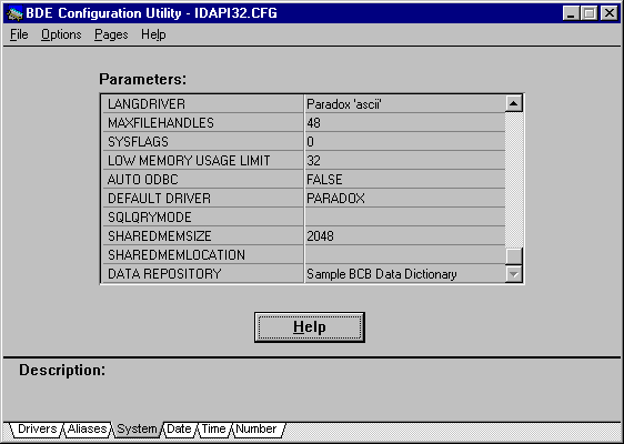 Рис. 5. Страница System утилиты конфигурации BDE. Таблица 1. Параметры системы и сети, используемые BDE.