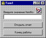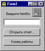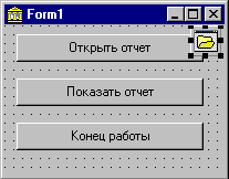 Рис. 3. Приложение для тестирования возможности управления отчетом на этапе выполнения. Создадим обработчик события, связанного с нажатием на кнопку "Открыть отчет":