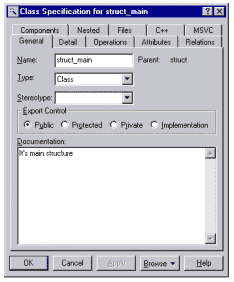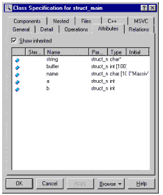 Рис.4 Рисунки 2, 3 и 4 показывают отдельные спецификации. 2 - модель структуры, полученной в результате обратного проектирования Как видим, конечный результат достоин внимания, поскольку модель ничего не теряет в результате обратного проектирования, в то же время само обратное проектирование представляет мощныхй механизм анализа эффективности существующих программных наработок нажатием на одну-две кнопки. И еще... в качестве частного случая рассмотрим объявление подструктуры в соответствии с нижеприведенным листингом: