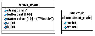 Рис.5 Как видим все ясно и понятно. Скромно, но очень информативно. К сожалению, если дело касается структур, то никакие связи в модели не генерятся! Теперь перейдем к более тяжелым материям в виде классов С++. Хотя язык С и остается достаточно мощным структурным языком, все же его "изобразительных" средств в плане построения крупных информационных систем явно недостаточно. Мы не будем углубляться в полемику о том почему на больших проектах С++ смотрится выигрышней, также не будем мы затрагивать самой концепции ООП - все это тема отдельной статьи (может и не одной) или книги... хотя вряд ли стоит ее писать... подобных трудов да от именитых авторов бессчетное множество. Нас интересует достаточно приземленная проблема: как классы из чистого текста можно преобразовать в наглядную модель с обеспечением всех графических связей... Как и ранее, попробуем проделать реверсинжениринг используя простой класс. За основу программы перепишем (подстроим) структуру под класс. Получим в итоге нечто похожее на следующий листинг: