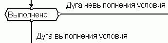 Здесь дуга, выходящая из бокового угла фигуры, всегда соответствует невыполнению условия (else). Дуга, выходящая снизу, соответствует выполнению условия (if). Такое жесткое сопоставление смысла выходных дуг с пространственным расположением их выходных точек существенно упрощает чтение схем: разработчику не надо вчитываться в текст дуги, чтобы понять, куда идет алгоритм при каких-либо условиях. Кроме того, обозначения дуг становятся ненужными, а схема освобождается от избыточной информации.