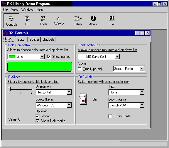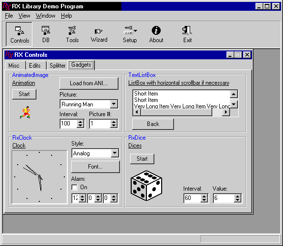 Пример RX Library Demo Program иллюстрирует работу большинства компонентов (рисунки 2-11 данной статьи сделаны с использованием этого примера). Эта демонстрационная программа существует также в версии для C++Builder.