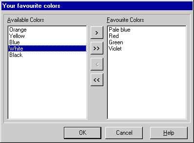 Весьма интересен также компонент TDualListDialog - двойной список с перемещаемыми элементами (подобные диалоговые панели нередко используются в средах разработки Delphi и C++Builder, рис. 8).