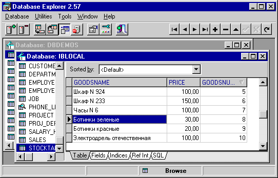 Особый интерес представляет утилита Database Explorer (имеющаяся в 16-и 32-разрядном вариантах, а также в варианте для C++Builder). Некоторые ее функциональные возможности имеются в SQL Explorer, но по сравнению с ним имеются и другие полезные возможности, например, трассировка SQL-предложений, экспорт и импорт данных и др. (рис. 15).
