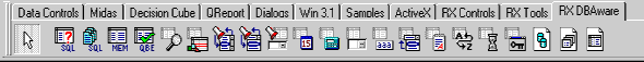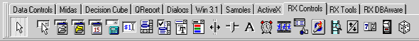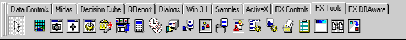После установки библиотеки в соответствии с прилагаемыми к ней инструкциями в палитре компонентов появятся три дополнительные страницы: RX Controls (управляющие элементы, рис. 1а), RX Tools (разнообразные полезные компоненты, в основном невизуальные, рис.1б) и RX DBAware (компоненты доступа к данным и отображения данных, рис. 1c). Рассмотрим эти компоненты более подробно.