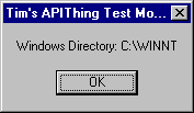 Рис. 1. Пример использования TtvAPIThing TAutoRelaunchApplicationTorry\vcl\system\autorel.zip TAutoRelaunchApplication - невизуальный компонент, заставляющий содержащее его приложение автоматически запускаться, если во время его работы происходит перезагрузка Windows 95 / 98 / NT.