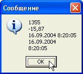 Пример обращения к процедуре: KdnMessageV([1355,-15.87,Now,DateOf(Now),TimeOf(Now)]); и окно, отображающее результат обращения: ![]()