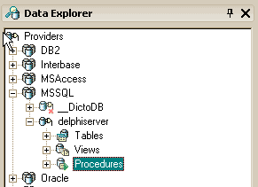 ОтладкаПонравилось поведение системы при возникновении Exception — появляется окно с уведомлением об Exception и с возможностью поставить галочку "Игнорировать этот тип Exception", вместо того, чтобы открывать окно Tools | Debugger.. Изменилась работа с точками останова. Появилась очень удобная возможность, не удаляя точку останова, отключить ее, пометив как "disable". Это можно сделать в редакторе кода по правой кнопке на точке останова, и прямо в списке "Breakpoint list". В этом списке можно включать/выключать все точки или определенные группы (меню по правой кнопке). Так же, теперь прямо в окне "Breakpoint list" можно изменять значение Condition и принадлежность к определенной группе для каждой точки. Встроенный Data ExplorerВ IDE интегрирован Data Explorer, который содержит как средства просмотра базы данных, так и ряд инструментов для редактирования. Окно Data Explorer можно найти на одной из закладок окна Project Manager справа от редактора кода (при умолчанных настройках среды) или в меню View | Data Explorer Выбираете провайдера для вашей БД, настраиваете коннекцию к базе и получаете список ее объектов: