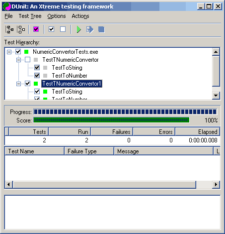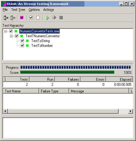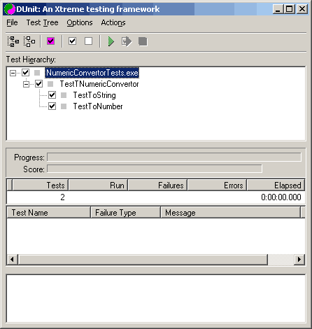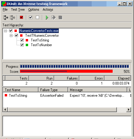 В методах тестов заменяем помеченные TODO строки на код, обеспечивающий входные данные для тестируемых методов и сравнивающие результат с ожидаемым. В методе Setup пишем код для вызова корректного конструктора procedure TestTNumericConvertor.SetUp; begin FNumericConvertor := TNumericConvertor.Create (10); end; Метод TestToString принимает вид: