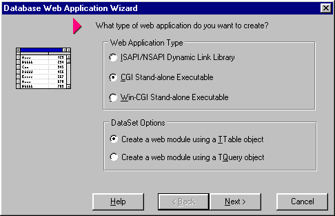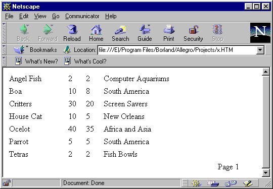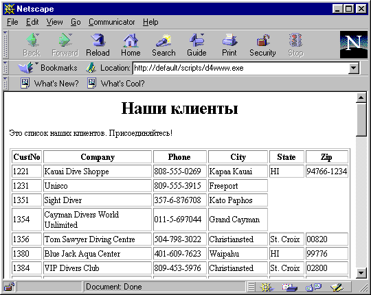 Рис. 21 Отчет QuickReport в формате HTML, отображенный в броузере. Автоматизация создания приложений для публикации данных в InternetВ Delphi 4 имеется DB Web Application Wizard, позволяющий автоматизировать создание приложения для публикации данных в Internet. После выбора соответствующей пиктограммы в репозитарии объектов можно выбрать тип приложения и тип компонентов TDBDataSet для построения приложения.