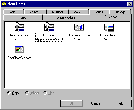 Рис. 22 Выбор DB Web Application Wizard из репозитария объектов Delphi 4.