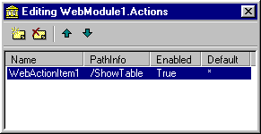 Рис. 28 Редактор свойства Actions компонента TWebModule Далее можно выбрать сгенерированный объект TWebAction, выбрать его в качестве действия по умолчанию - и можно компилировать приложение, а затем тестировать его с помощью web-сервера и web-броузера.