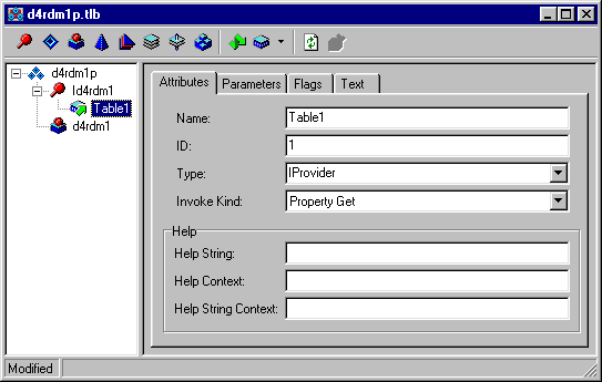 Рис. 33 Библиотека типов удаленного модуля данных После этого можно скомпилировать сервер приложений и приступить к созданию "тонкого" клиента. С этой целью можно добавить в имеющуюся группу проектов еще один проект (если разработка клиента ведется на том же компьютере, где создавался сервер приложений), либо просто создать новый проект или активную форму (в случае "тонкого" клиента в виде ActiveX) и поместить туда какой-либо компонент доступа к удаленному серверу (например, TSocketConnection). Для осуществления удаленного доступа с помощью TSocketConnection следует запустить на том компьютере, где содержится сервер приложений, Borland Socket Server. Затем следует установить свойства Host и ServerName равными имени компьютера и удаленного модуля данных (в формате <имя исполняемого файла>.<имя удаленного модуля данных>) соответственно. Далее можно поместить на форму компонент TClientDataSet, связать его с компонентом TSocketConnection и выбрать значение свойства ProviderName из выпадающего списка. Теперь можно помещать на форму компоненты для отображения данных (например, создав объекты TFields и переместив их на форму методом drag-and-drop из списка полей). Таким образом, "тонкий" клиент готов.