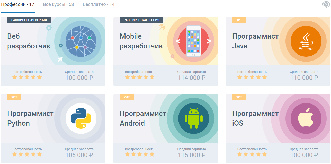 Веб-разработчикОсобенность GeekBrains в том, что серьёзные профессиональные курсы доступны для новичков. Совсем не обязательно даже изучать предварительно основы программирования — грамотно выстроенная система обучения поможет с нуля вникнуть в детали будущей профессии. Вот, например, профессиональный курс «Веб-разработчик» — вполне достойный выбор. Обучение займёт 11 месяцев. Да, это дело серьёзное, поэтому придётся потратить довольно много времени. Впрочем, старания окупятся сторицей — средняя зарплата разработчика в Москве составляет 74 000 рублей. Бывает, разумеется, и больше, тут всё зависит от того, насколько кандидат квалифицирован. В ваших силах сделать себя максимально привлекательным в глазах работодателя. Вот полный перечень курсов, входящих в программу: